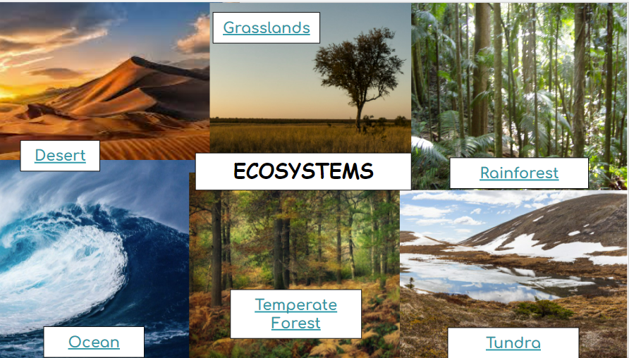 Here is an example of a recent hyperdoc I created with Google Slides over ecosystems. Students click on the various ecosystems and it takes them to information from sites such as Readworks, Youtube, Flipgrid, Quizziz, Genially, and Whiteboard.chat. My plan is to link this hyperdoc to my virtual classroom, (which my in person students frequently access) and then have students choose one of the ecosystems to create a Canva or Animoto presentation about.